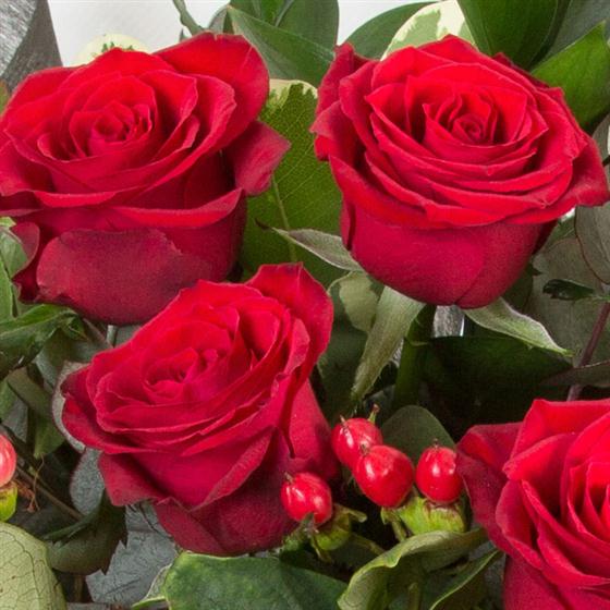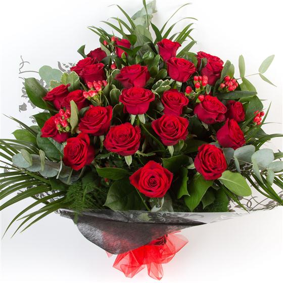 A show stopping bouquet of 24 long stemmed roses, hand-tied and presented in co-ordinating gift wrap.